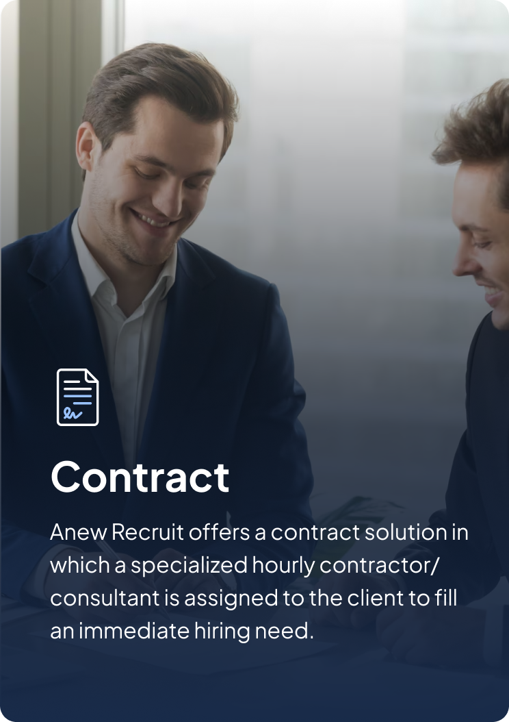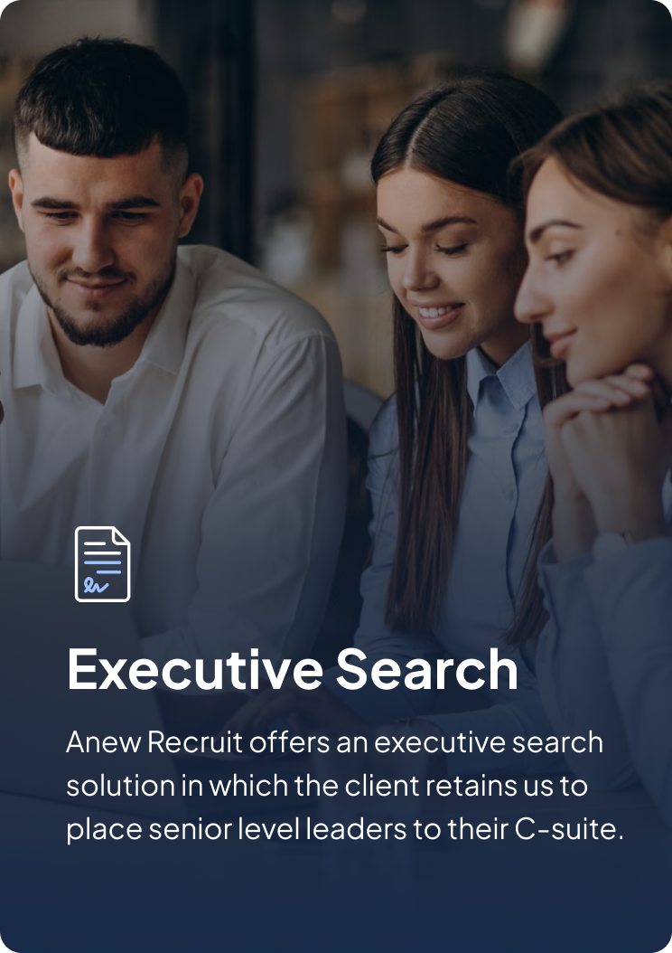 Anew Recruit is your premier boutique recruiting firm, dedicated to connecting top employers with exceptional talent. With our extensive recruiting experience and exceptional customer service, we build high-performing talent teams that drive revenue and success. Let us be your strategic talent partner for unparalleled hiring, providing the best infrastructure, processes, people, and branding.